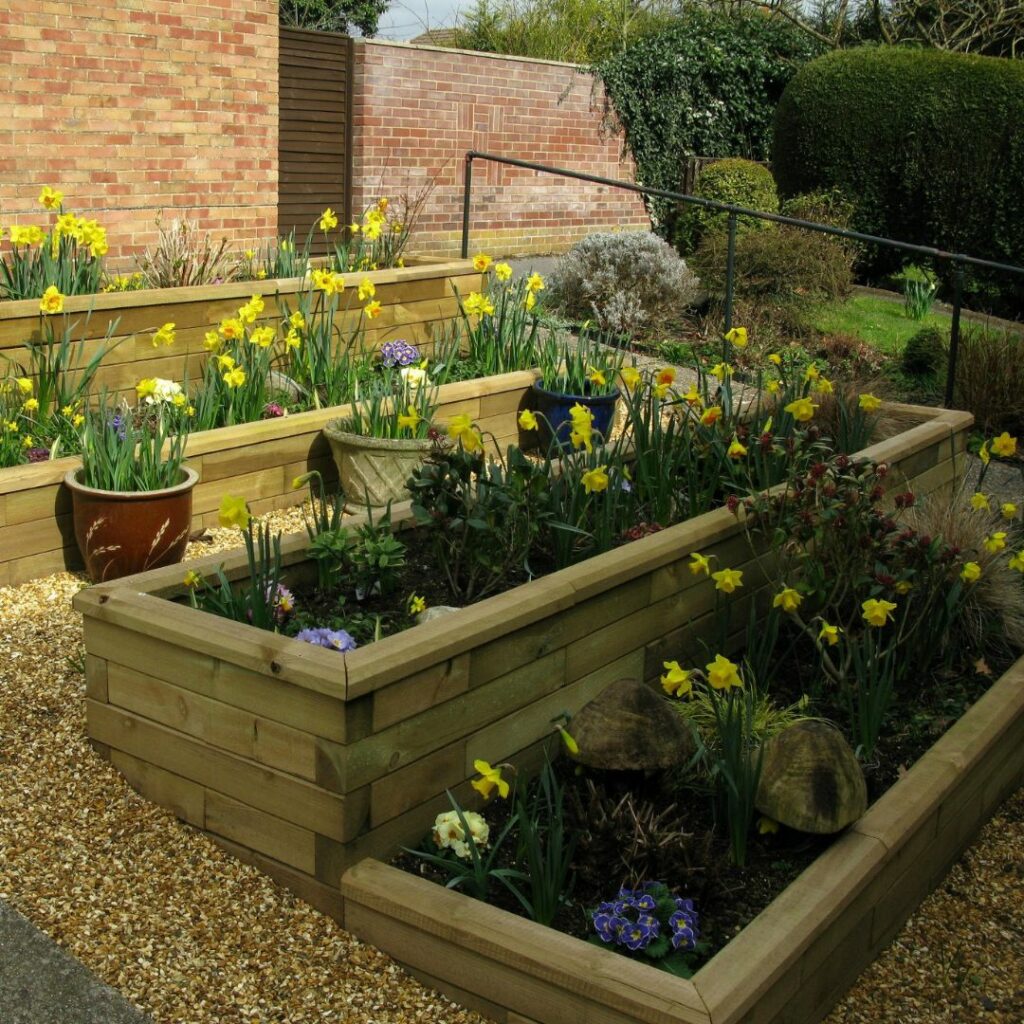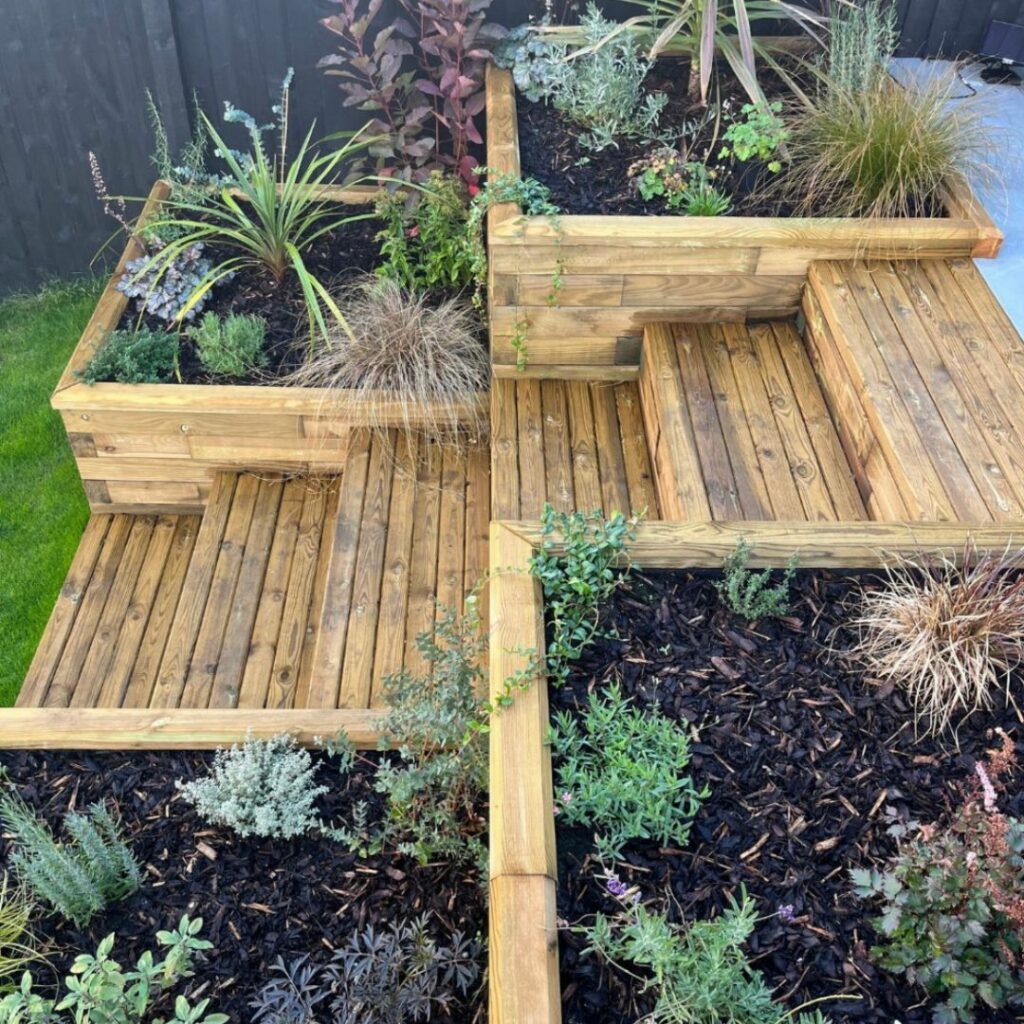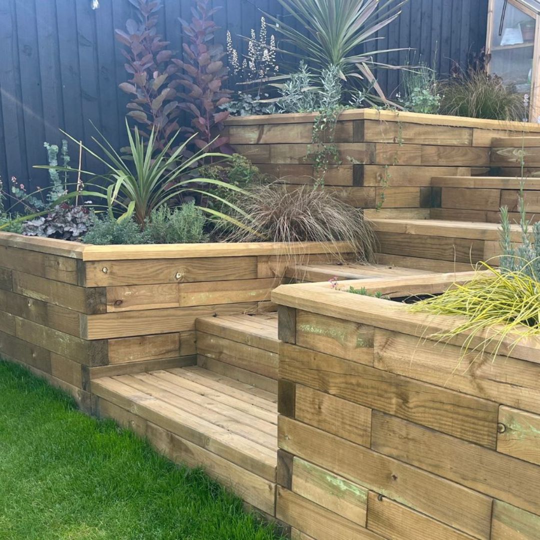 Plantekasser i flere niveauer og med trin er en fantastisk mulighed for at skabe en have med flere niveauer – især, hvis der er en stejl skråning i haven! Plantekasserne hjælper med at bryde området op, så det bliver mere interessant at kigge på i forhold til blot at have en høj støttemur. Hvis du ønsker et design med flere niveauer, kan det være en god idé at have planteområder i forskellige højder. Vi kan også designe niveauinddelte højbede, der passer til din have. Du skal blot kontakte vores gratis designservice for at få hjælp.