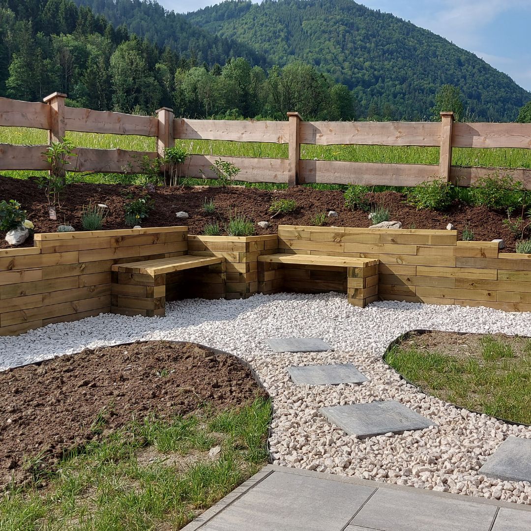 Vores støttemure kan bygges i en højde på op til 1,05 meter, og alle vores byggesæt kan tilpasses. Afhængigt af bredden og højden kan vi designe siddepladser som en integreret del af støttemuren, eller du kan tilføje en bænk foran støttemuren. Hvis du har idéer, kan vi anbefale vores gratis designservice for at få hjælp til at føre dem ud i livet.