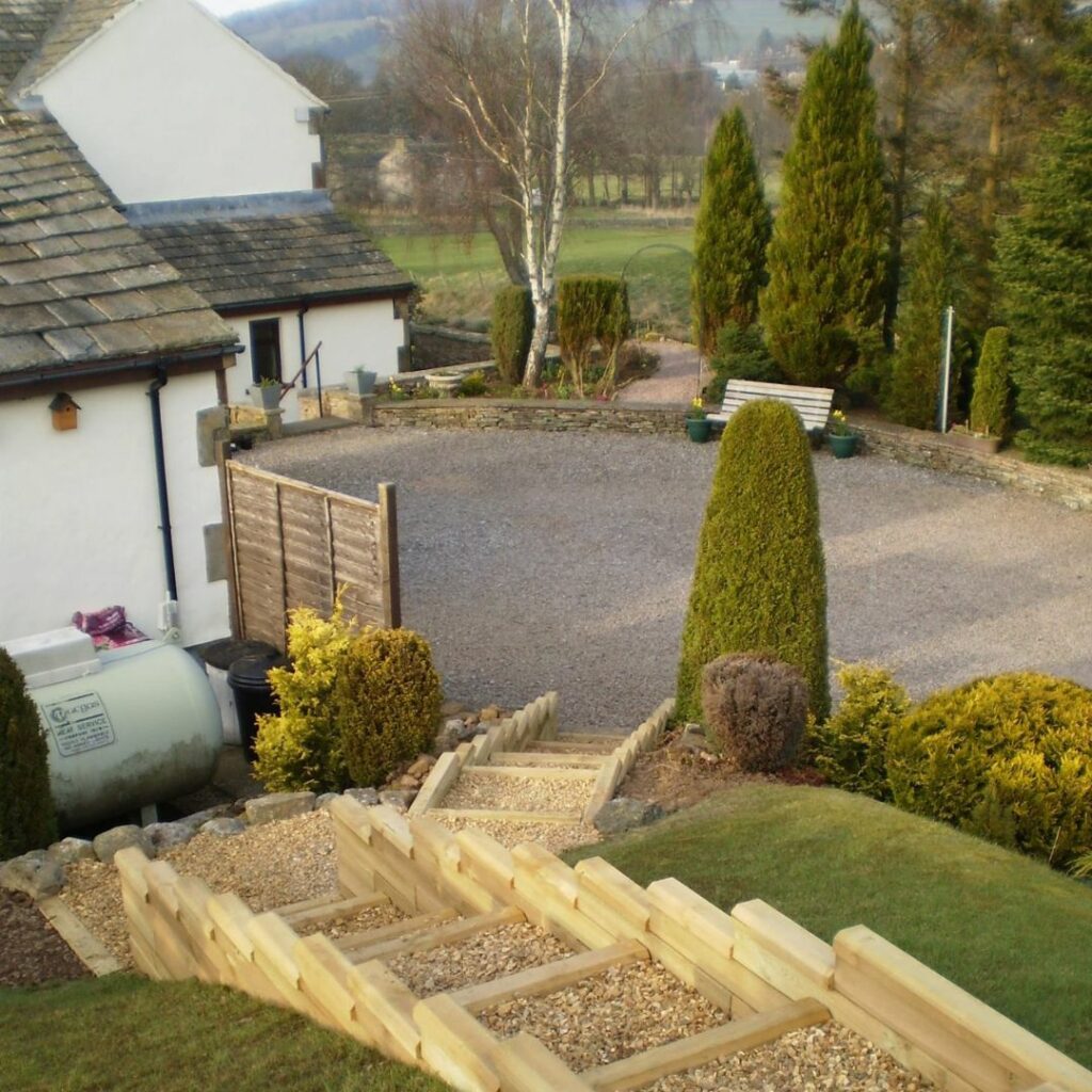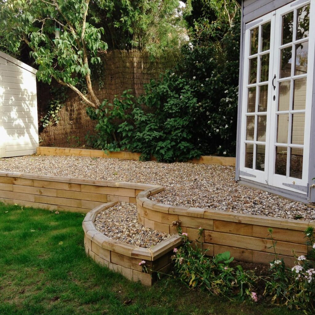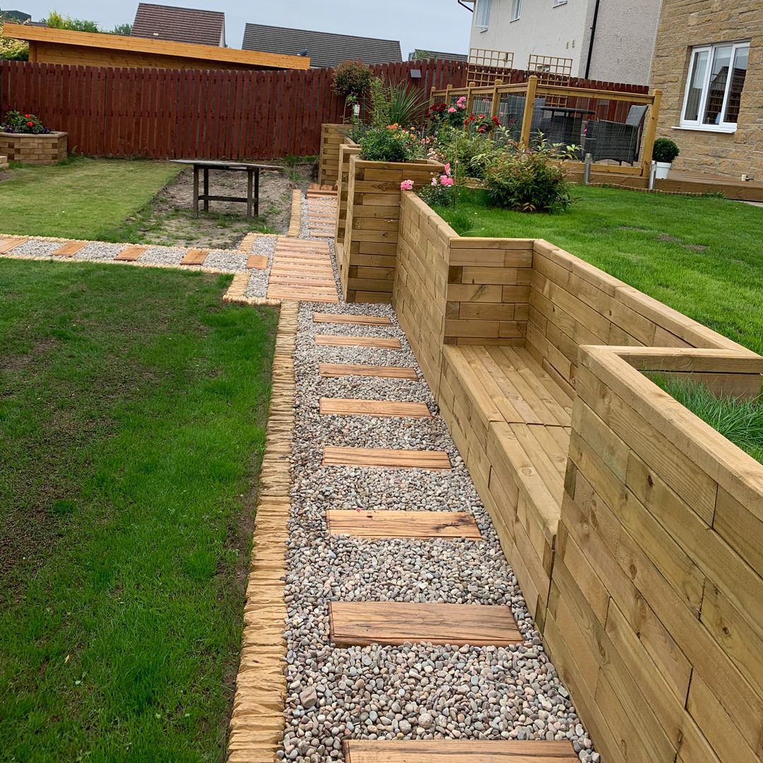 Flere af vores kunder har løst dette utrolig flot og har bygget videre på støttemuren for at skabe en kombineret støttemur, trin og bedkant i én samlet konstruktion – brug vores gratis designservice, hvis du er interesseret i denne type design. Vores kunder Ruth og James har brugt en lav støttemur til at skabe niveauer i deres nyanlagte have. Det viser virkelig alsidigheden i WoodBlocX, og hvordan det kan bruges til forskellige formål.