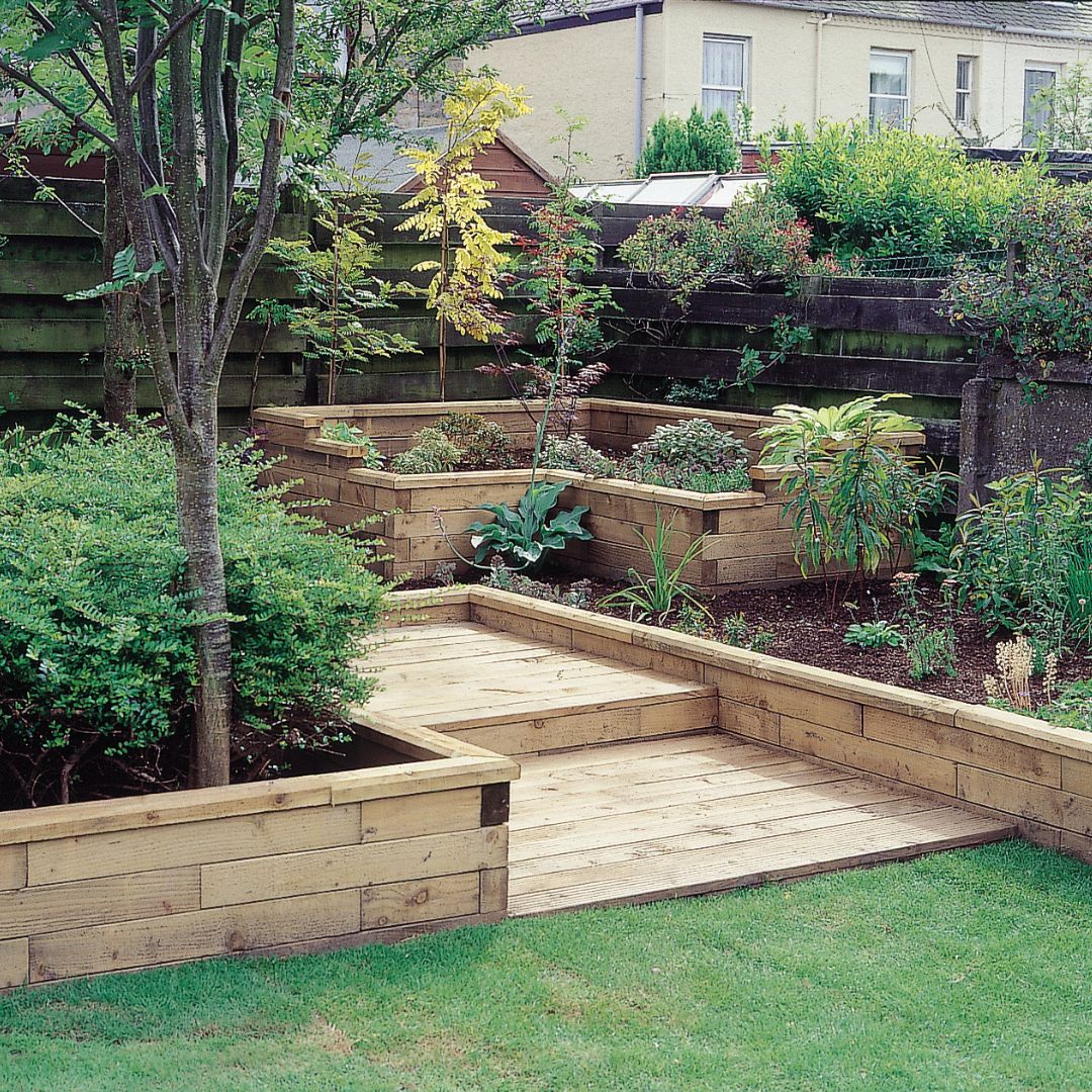 Hvis du ikke har planer om at inddele hele din have i niveauer, men stadig gerne vil have et interessant element i haven, kan du bygge et eller flere højbede ind i skråningen for at få flere områder til planter eller grøntsager.