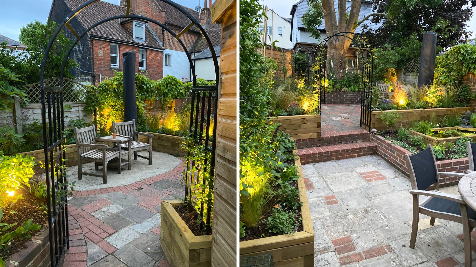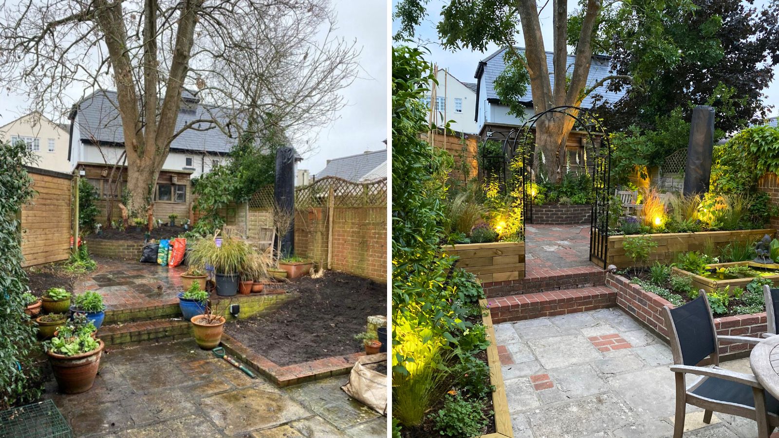 Det endelige design (som blev accepteret inden bestillingen online) indrammede på flot vis begge sider af haven. Til venstre vil en lang støttemur fungere som en dekorativ afgrænsning af haven med masser af plads til planter, og den forhøjes et niveau, når den når til trappen. Øverst i denne sektion blev der designet et højbed, som tager højde for baghavens form. I højre side blev der placeret en anden støttemur og et rektangulært højbed, som giver mere plads til planter, og der blev designet et lille havebassin i midten af en nybygget stenkant.
