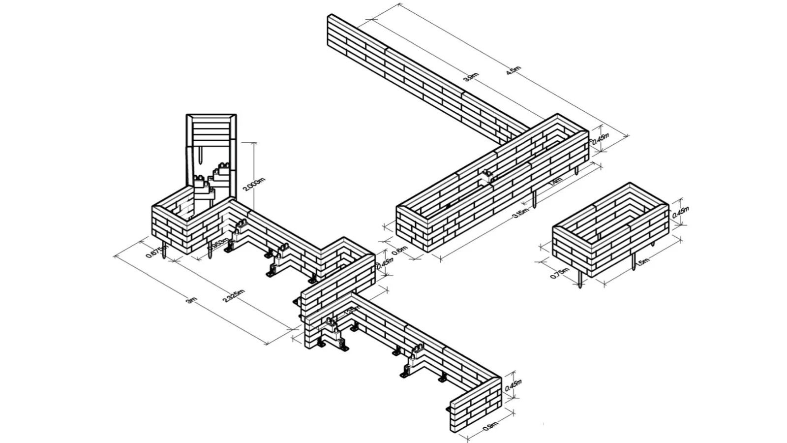 Designet skulle erstatte krukker og andre beholdere med funktionelle og let tilgængelige højbede med stenmuren som baggrund til strukturerne. Efter at have tegnet en skitse kontaktede Barry og Becky os gennem vores gratis designservice. Harry fra vores designteam arbejdede tæt sammen med dem om at genskabe Beckys designvision med WoodBlocX i vores særlige software.