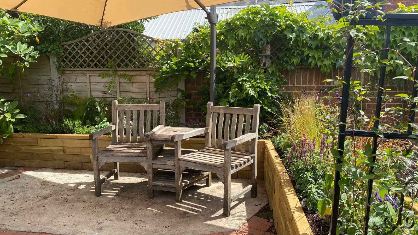 "Vi er meget glade for det færdige resultat. Vores datter Becky har gjort et fremragende stykke arbejde med det overordnede design og valget af planter. Nu er det en virkelig stor fornøjelse at sidde i vores have, og den er nem at vedligeholde. Nu kan vi bare sidde og undre os over, hvorfor vi ikke valgte højbede og WoodBlocX for flere år siden!"
