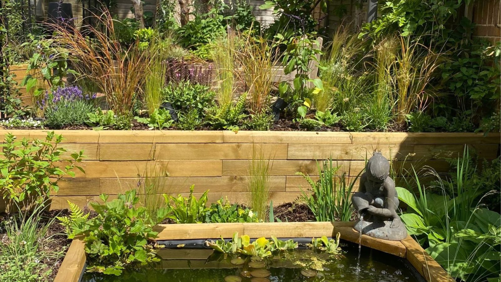 Visionen for haven var at skabe tre separate zoner: et havebassin med plads til dyreliv tæt på huset, et område med siddepladser dedikeret til helårsplanter og en blanding af højbede og bedkanter i yderkanterne af haven. Becky ville også installere en metalbue over trappen, som skulle fastgøres mellem to WoodBlocX-strukturer.