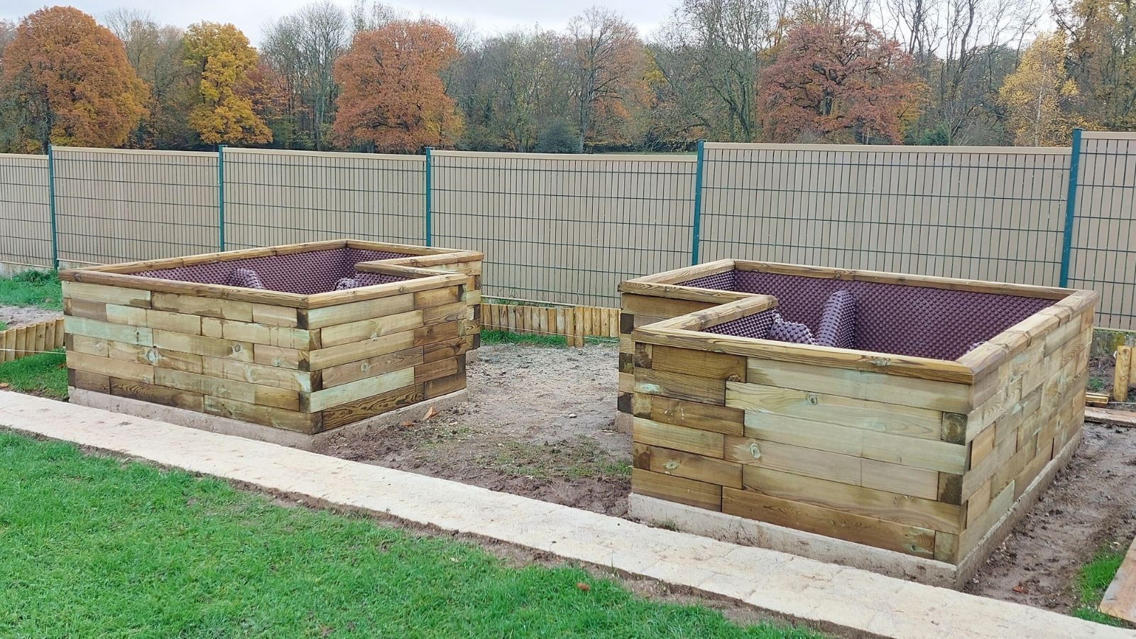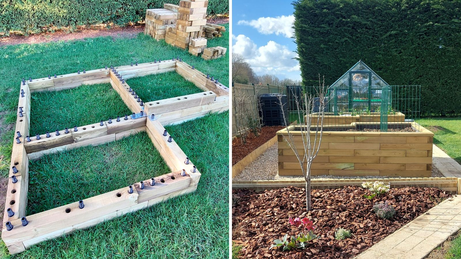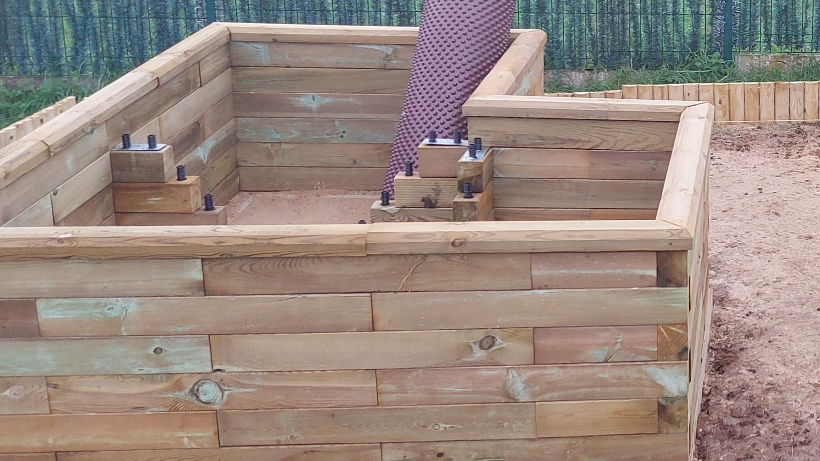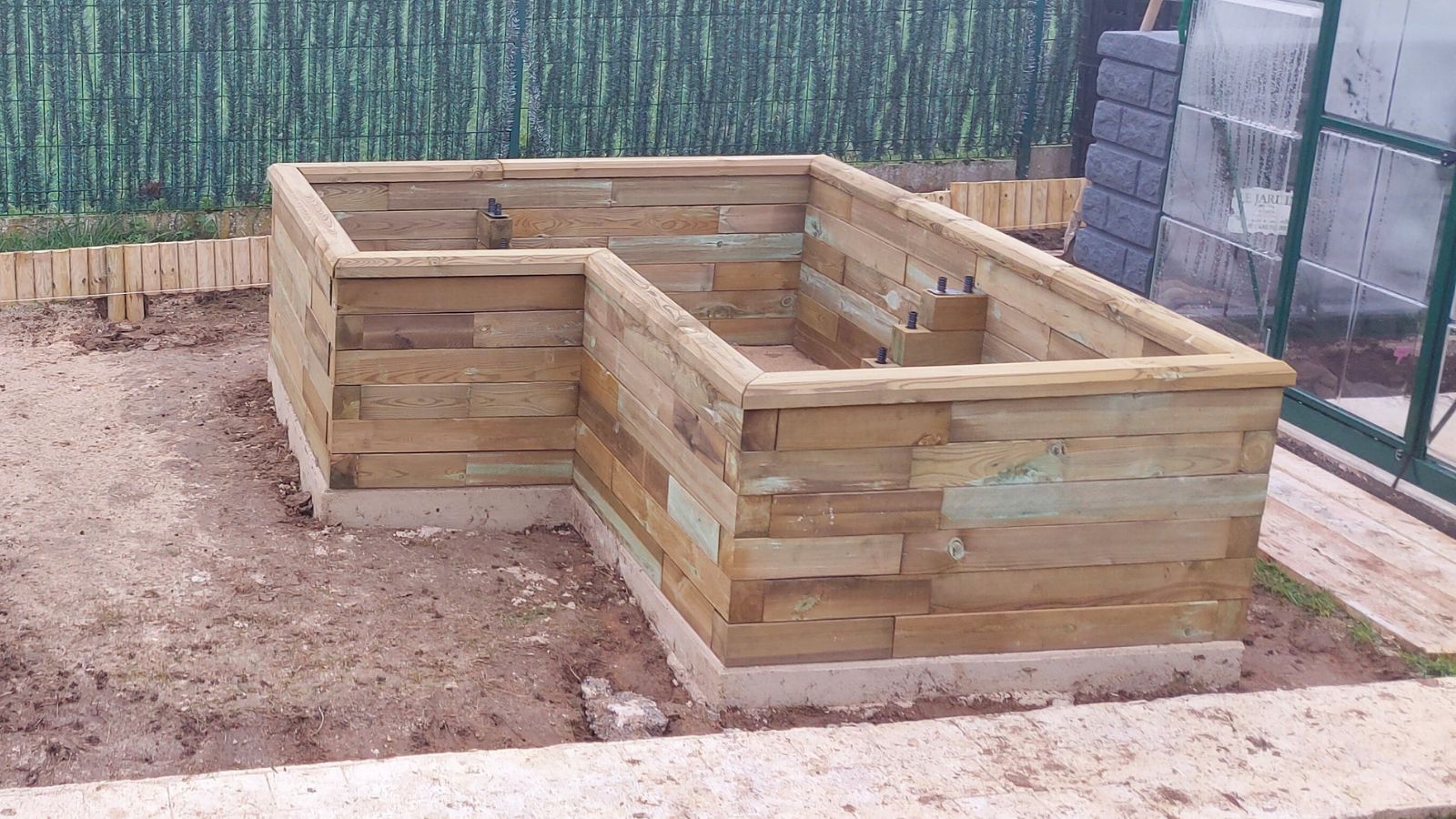 Laures ordre omfattede en detaljeret byggevejledning, som var nem at følge. Da Laures L-formede højbede var store, omfattede designet også indvendige støtteblokke for at give strukturen ekstra styrke. Der blev også monteret en beskyttende folie, da det forlænger levetiden på højbedene.