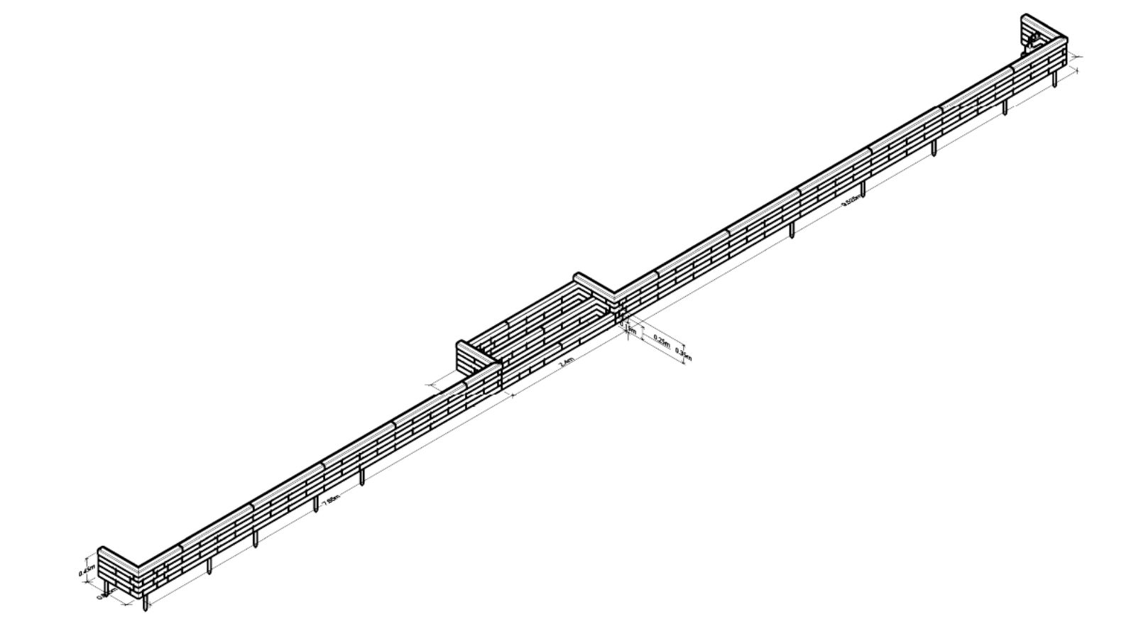 Da muren skal bygges på blødt underlag, følger der jordspyd med designet, så muren kan forankres. Når man bygger en støttemur, er det meget vigtigt, at der tages højde for dræning, og at der bruges den rigtige type folie. Vi sælger en beskyttende folie, der skal monteres på bagsiden af muren og dække alle støtteblokkene for at beskytte træet mod fugt og kontakt med jorden. Folien kan fastgøres over det sidste lag dyvler, inden afslutningslaget sættes på. Du kan finde flere oplysninger om dræning og folier på vores blog.