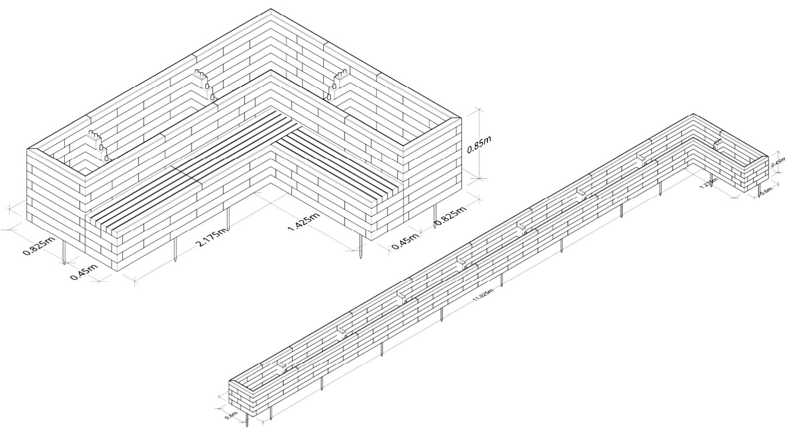 Under planlægningen af designet kontaktede Twinings vores gratis designservice, hvor det er muligt at få flere revisioner af designet – og man er på intet tidspunkt forpligtet til at købe. Den oprindelige idé var at have flere højbede og et højbed med bænk. I samarbejdet med Harry fra WoodBlocX blev der i stedet fundet frem til en løsning med et langt højbed. Der var nogle begrænsninger, som skyldtes grundens hældning, men WoodBlocX kan bygges på alle typer underlag, så længe det er helt jævnt.