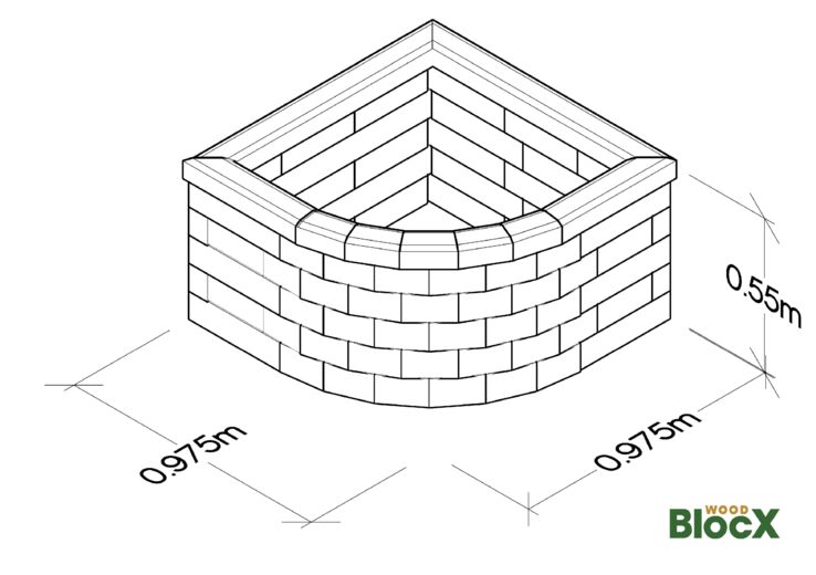 Curved Corner High Flower Bed / 0.975 x 0.975 x 0.55m