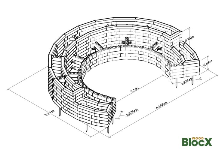 Cirkulær bålplads plantebænk 418 x 321 x 75 cm