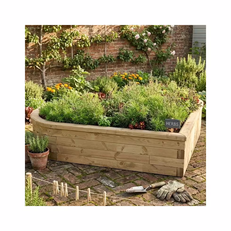 Forelsk dig i denne yndigt formede træblomsterbed, der synes naturligt egnet til roser, men som selvfølgelig kan rumme alt, hvad dit havehjerte begærer.