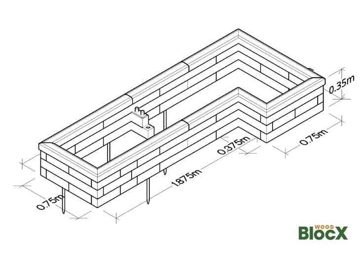 L-formet hævet havebed / 2,625 x 112,5 x 75 x 35 cm