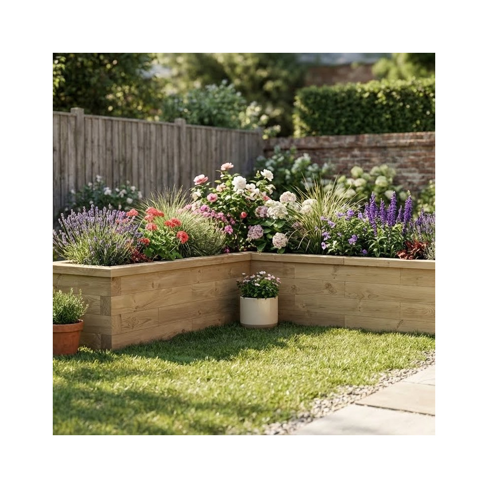 Har du brug for et siddeområde lige ved siden af dit haveparadis? Hvorfor ikke prøve vores Free Design Service - vores team er her for at hjælpe dig med at designe en skræddersyet struktur til din have. Hvis du elsker dette design og har dine egne målinger klar, er du velkommen til at bruge vores L-Shape raised bed calculator