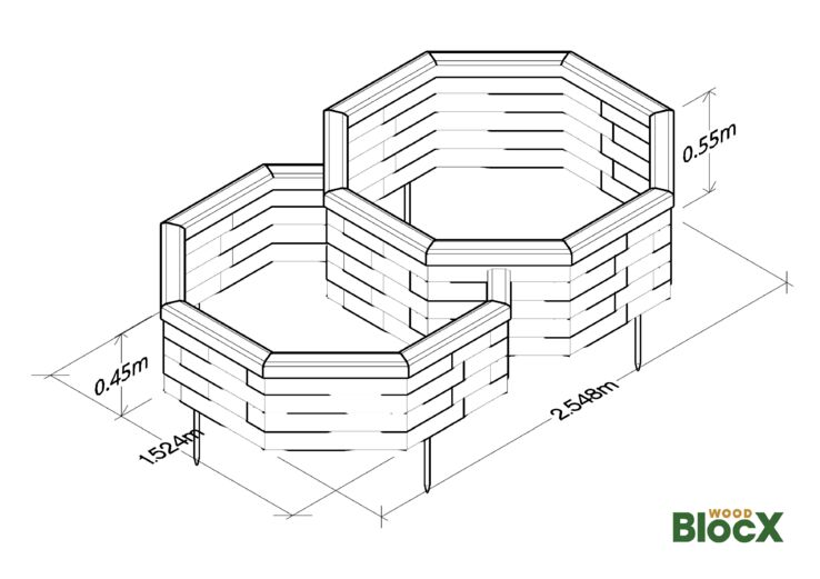 Ved at bruge vores unikke, modulære system af sammenlåsende træblokke, kan WoodBlocX bruges til at skabe næsten enhver ekstern landskabsstruktur. Fra taghaver og støttemure (maks. 1 m) til gademøbler og plantekasser, kan vores professionelle 3D-designteam arbejde tæt sammen med dig for at bygge en løsning, der passer til dit projektbudget og specifikation. Se vores brochure.