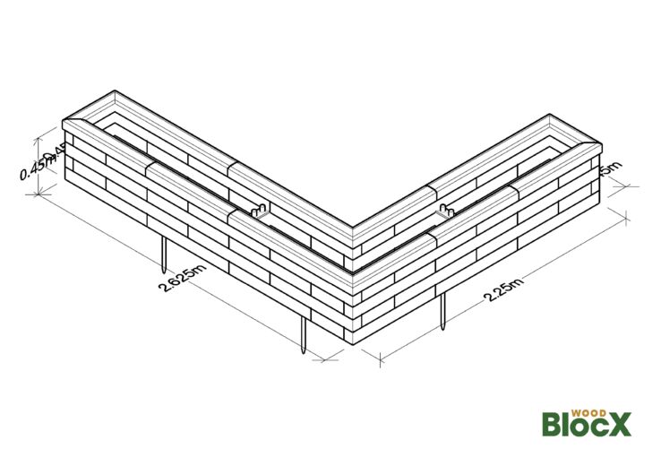 Patio Hjørne L-formet Hævet Bed 2.625 x 2.25 x 45 x 45 x 45 cm