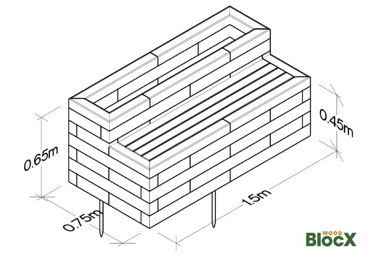 Designet med en bænk, der er 45 cm høj, 150 cm lang og 37,5 cm dyb, så du og nogle få kan sidde komfortabelt. Den forhøjede plantekasse bagpå er 65 cm høj, hvilket giver dig den perfekte mulighed for at dyrke passende planter til afskærmning eller plads til at starte din egen køkkenurtehave.
