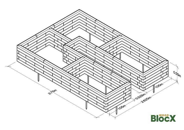 * Hvis du skal bygge på et blødt underlag, medfølger der jordspyd i dit samlesæt. Jordspyddene (400 mm spyd i galvaniseret stål) bruges til at fastgøre strukturen i underlaget. Spyddene skal monteres, når du bygger det nederste lag af dit design.