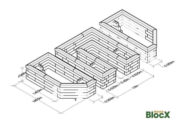 Disse tre plantekasser er omhyggeligt designet til at rumme 3 modne træer og skabe en beplantet grænse for dem. Den 45° vinklede BlocX gav den perfekte form til at integrere træerne, samtidig med at der blev tilføjet nogle rektangulære former for at kurve haven.