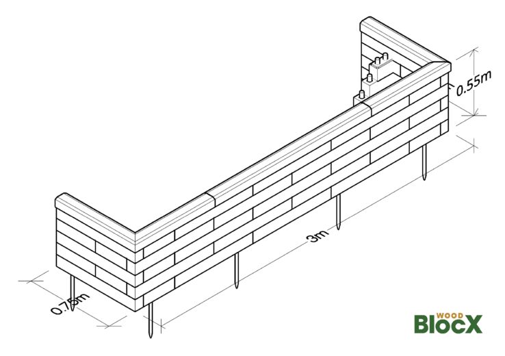 Ved at bruge vores unikke, modulære system af sammenlåsende træblokke, kan WoodBlocX bruges til at skabe næsten enhver ekstern landskabsstruktur. Fra taghaver og støttemure (maks. 1 m) til gademøbler og plantekasser, kan vores professionelle 3D-designteam arbejde tæt sammen med dig for at bygge en løsning, der passer til dit projektbudget og specifikation. Se vores brochure.