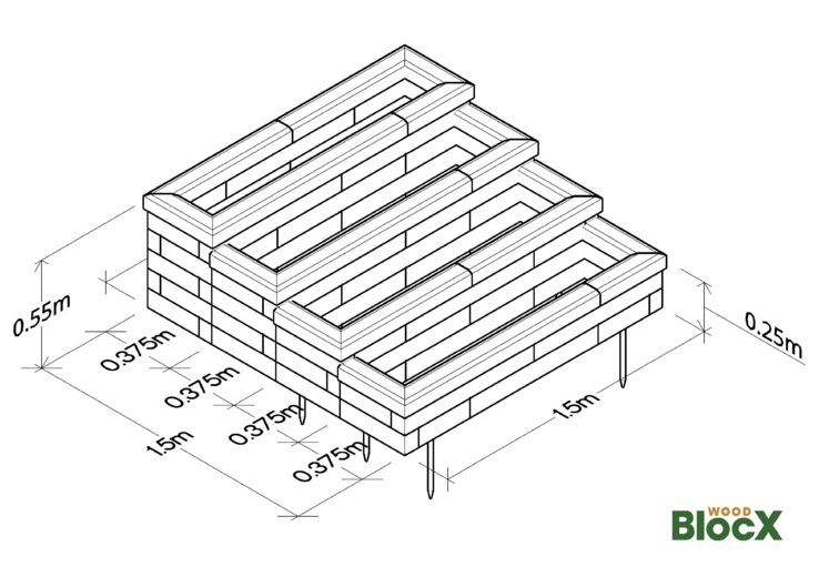 Ved at bruge vores unikke, modulære system af sammenlåsende træblokke, kan WoodBlocX bruges til at skabe næsten enhver ekstern landskabsstruktur. Fra taghaver og støttemure (maks. 1 m) til gademøbler og plantekasser, kan vores professionelle 3D-designteam arbejde tæt sammen med dig for at bygge en løsning, der passer til dit projektbudget og specifikation. Se vores brochure.