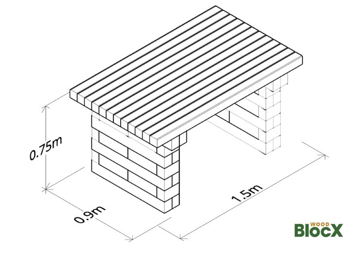 WoodBlocX Bord 150 x 90 x 75 cm